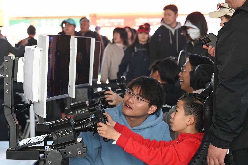 2026年3月13日,上海汽车文化节上,一个孩子正在体验模拟赛车。
